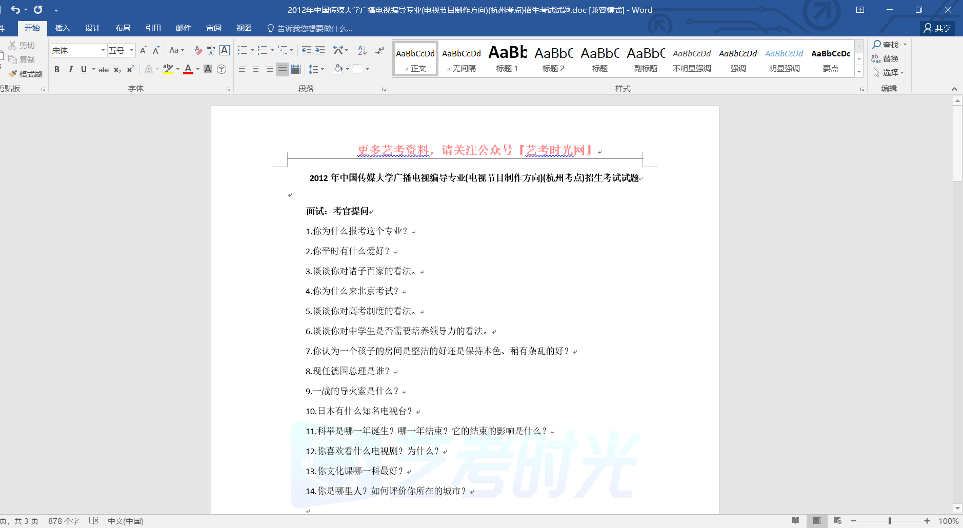 2012年中国传媒大学广播电视编导专业(电视节目制作方向)(杭州考点)招生考试试题