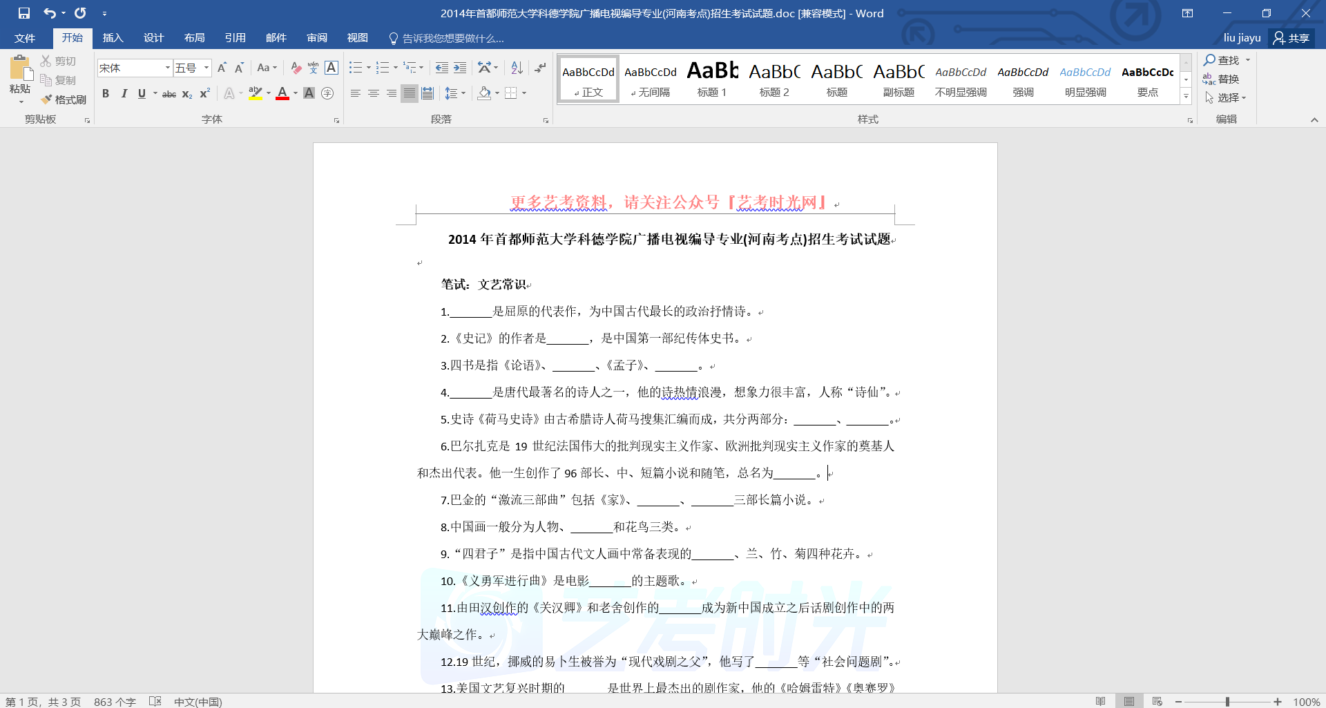 2014年首都师范大学科德学院广播电视编导专业(河南考点)招生考试试题