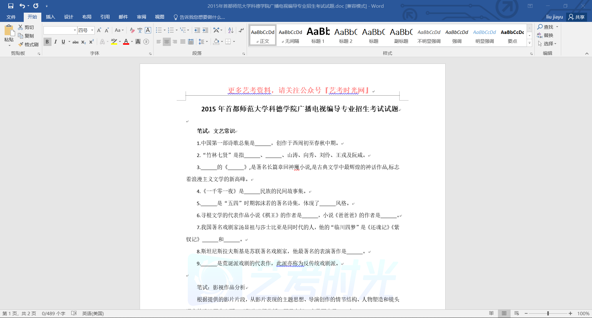 2015年首都师范大学科德学院广播电视编导专业招生考试试题