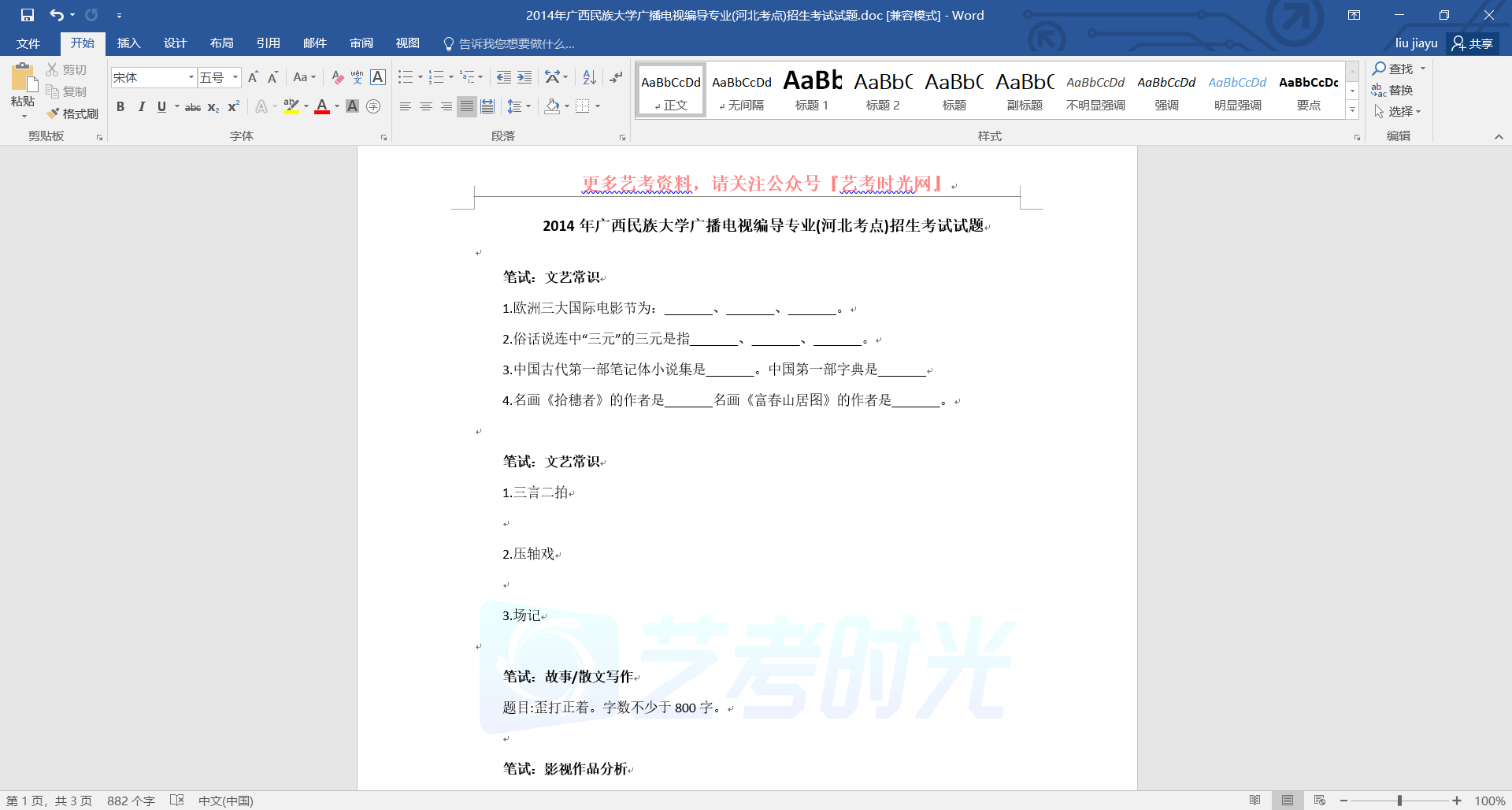 2014年广西民族大学广播电视编导专业(河北考点)招生考试试题