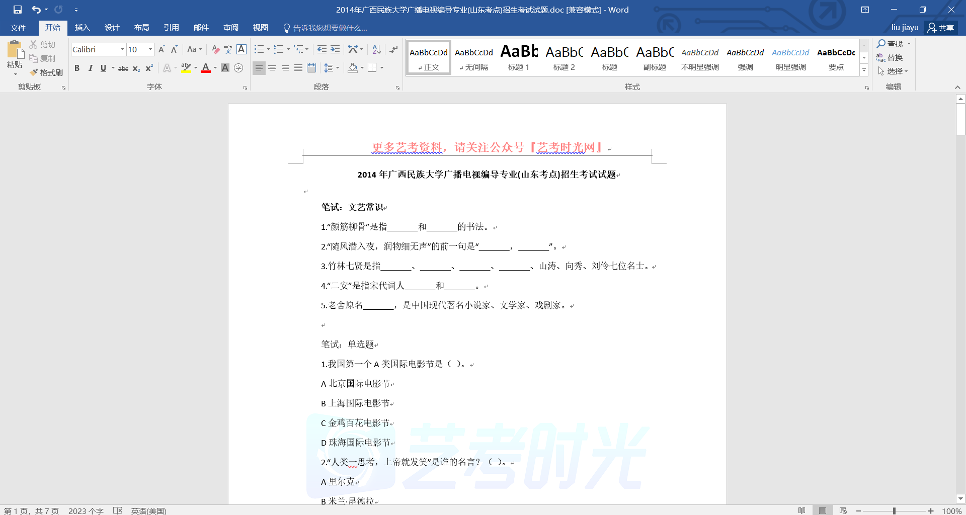 2014年广西民族大学广播电视编导专业(山东考点)招生考试试题