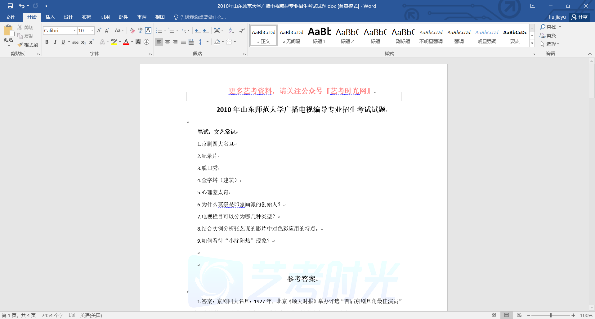 2010年山东师范大学广播电视编导专业真题(含答案) 艺考 • 2023-06-25 15:32:08 • 编导 2010年山东师范大学广播电视编导专业招生考试试题 笔试:文艺常识 1.京剧四大名旦 2.纪录片 3.脱口秀 4.金字塔(建筑) 5.心理蒙太奇 6.为什么莫奈是印象画派的创始人? 7.电视栏目可以分为哪几种类型? 8.结合实例分析张艺谋的影片中对色彩应用的特点。 9.如何看待“小沈阳热”现象? 点击下载 本文由用户:艺考 投稿分享,如有侵权请联系我们(点击这里联系)处理,若转载,请注明出处:http://xueli.yktime.cn/47070.html 赞 (0) 艺考 0 生成海报 相关推荐 编导艺考影片分析:《归途列车》 ▲文档包含题目以及详细答案,编导真题如下: 影片分析:观看纪录片《归途列车》,写一篇800字以上的评论文章。 【考试院校】山东艺术学院201 1年广播电视编导专业艺术传媒方向考题 … 编导 2023-06-25 00 编导艺考影片分析:《法国中尉的女人》 《法国中尉的女人》:时空变幻的悲情经典 《法国中尉的女人》,摄制于1981年的电影,改编自约翰•弗尔斯的同名小说。即便今天看,依旧不乏诸多“前卫”之处,这也正是本片在当年的大部… 编导 2023-06-25 00 编导艺考故事创作:《手机》 手机 王明在这城市角落里安分的过着日子,寒风呼啸,王明依旧开着门等待儿子赵安回来。自从赵安父亲因病去世后,王明做单身母亲照顾儿子,幸得赵安也懂事,学习成绩好,家中清贫但也乐在其… 编导 2023-06-25 00 2011年广西艺术学院编导文化产业管理真题(含答案) 笔试:文艺常识 1.1905年,谭鑫培主演的中国第一部电影是_______。 2.扬州八怪包括罗聘、李方膺、高翔、李觯、汪士慎、_______、_______、____… 编导 2023-06-25 00 2019年吉林艺术学院广播电视编导招生笔试真题 1.唐宋八大家有哪几位?分析其中的一位 2.《狂人日记》的作者是谁?分析一下该作品 3.《我的叔叔于勒》的作者是谁?分析一下该作品 4.结合作品分析一下你最喜欢的中国演员。 5.以… 编导 2023-06-25 00 2019年南京艺术学院广播电视编导试题 2019年南京艺术学院广播电视编导试题 1.《送远曲》张籍 戏马台南山簇簇,山边饮酒歌别曲。 行人醉后起登车,席上回尊向僮仆。 青天漫漫复长路,远游无家安得住。 愿君到处自题名,他… 编导 2023-06-25 00 2014年湖南科技学院广播电视编导专业考试真题及答案 ▲文档包含题目以及详细答案,编导真题如: 笔试:文艺常识 1.鲁迅 2.艺术 3.镜头 4.什么是景别?艺术作品里常用的景别都有哪些? 5.说明蒙太奇的作用,举例解释。 笔试:故事… 编导 2023-06-25 00 编导影评范文:《无人区》 荒漠中人性向善的觉醒 ————评电影《无人区》 宁浩导演的《无人区》在磨砺四年之后终于走上银幕,让观众感受到了西部公路片的视听震撼。影片《无人区》就像一则黑色寓言故事,在西部无… 编导 2023-06-25 00 发表回复 您的邮箱地址不会被公开。 必填项已用 * 标注*昵称: *邮箱: 网址: 记住昵称、邮箱和网址,下次评论免输入 提交