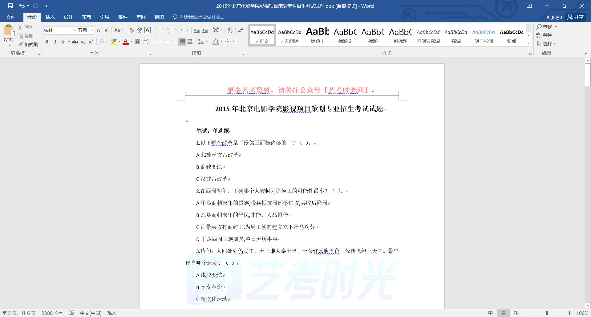 2015年北京电影学院影视项目策划专业招生考试试题