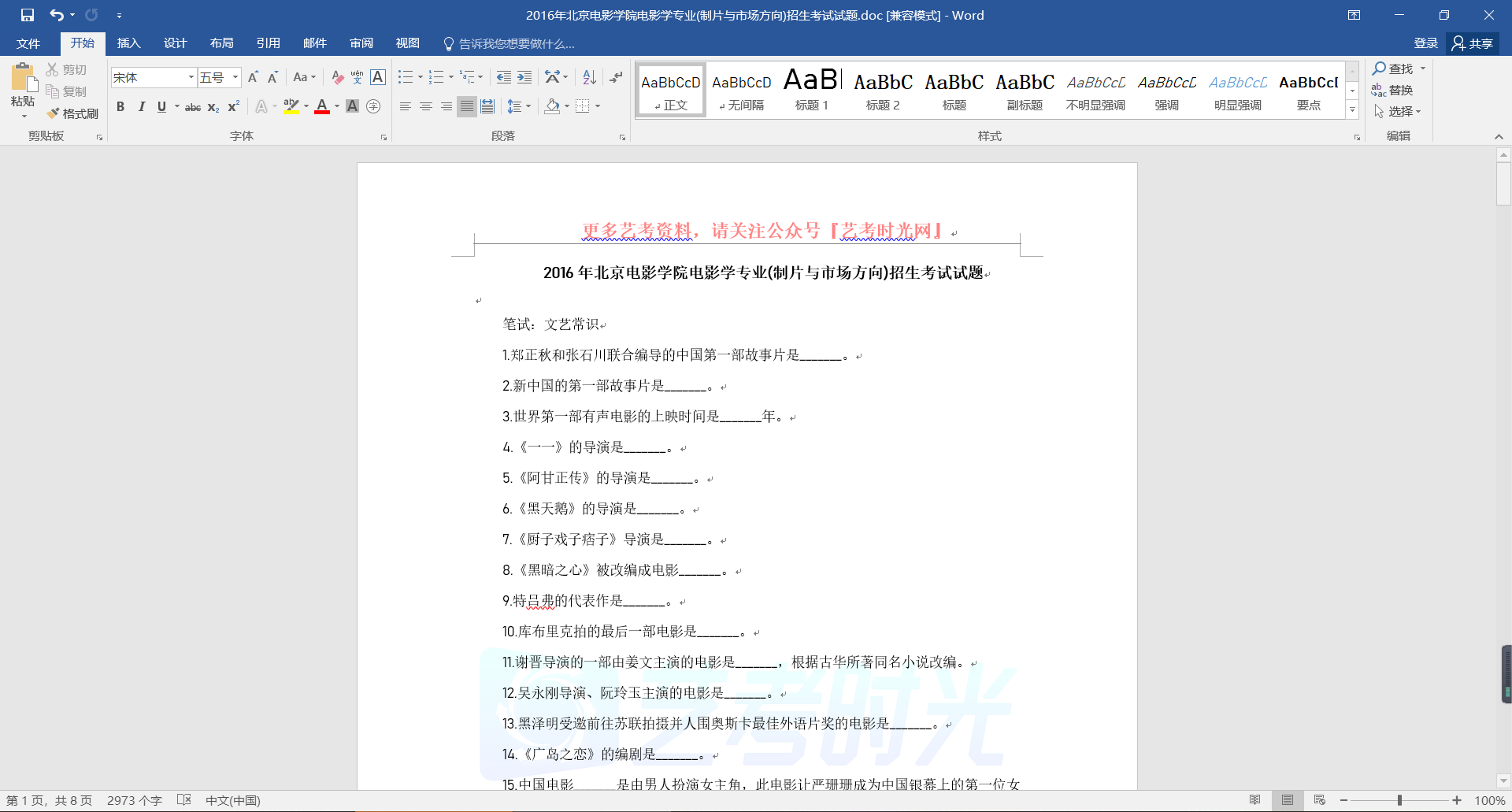 2016年北京电影学院电影学专业(制片与市场方向)招生考试试题