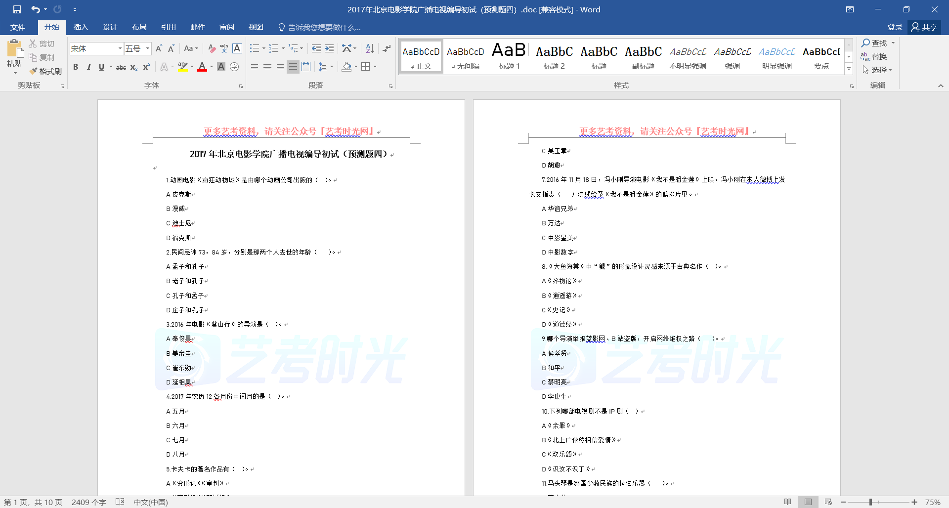 2017年北京电影学院广播电视编导初试(预测题四)