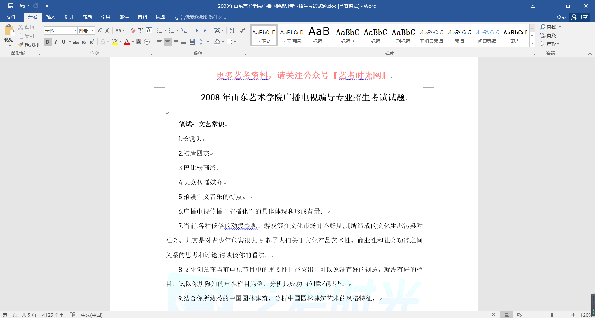 2008年山东艺术学院广播电视编导专业招生考试试题