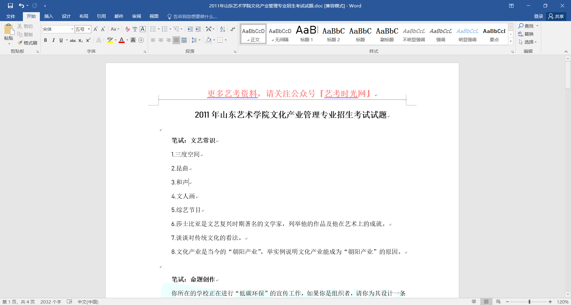 2011年山东艺术学院文化产业管理专业招生考试试题