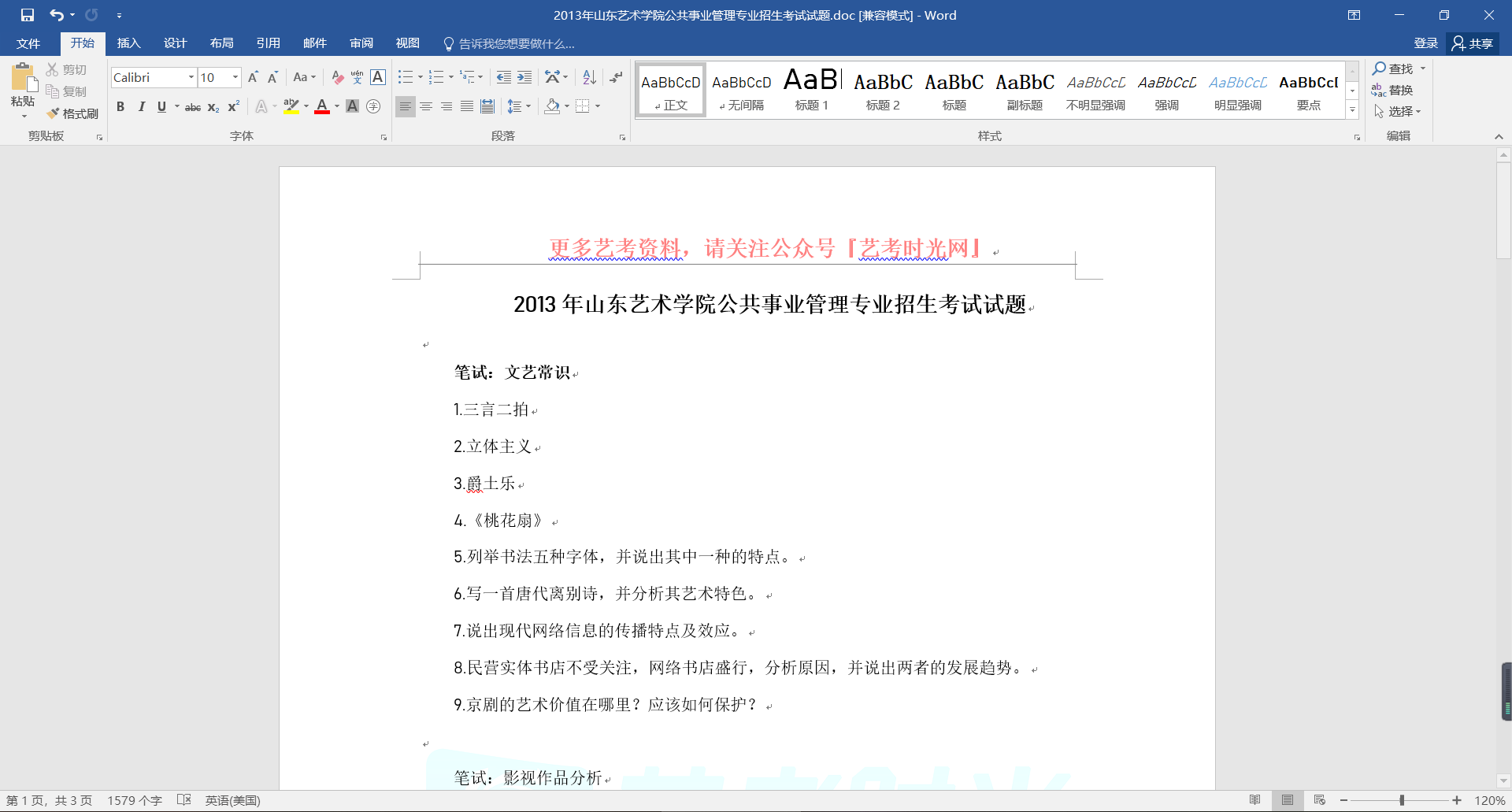 2012年山东艺术学院公共事业管理专业招生考试试题