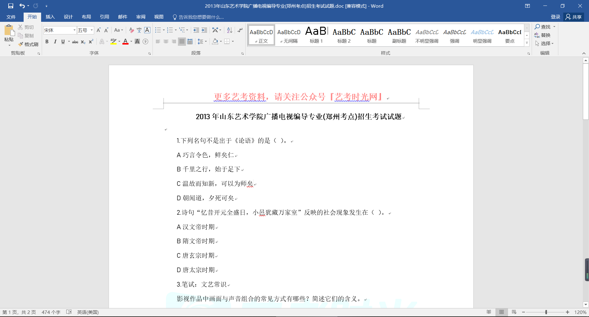 2013年山东艺术学院广播电视编导专业(郑州考点)招生考试试题