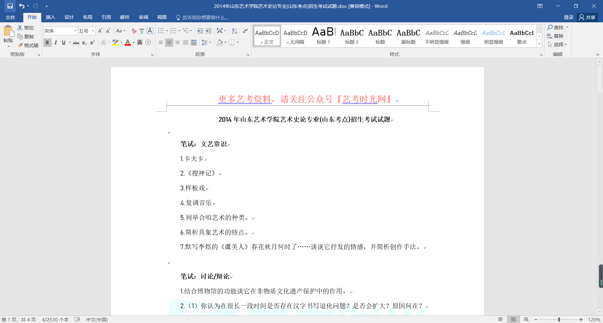 2014年山东艺术学院艺术史论专业(山东考点)招生考试试题