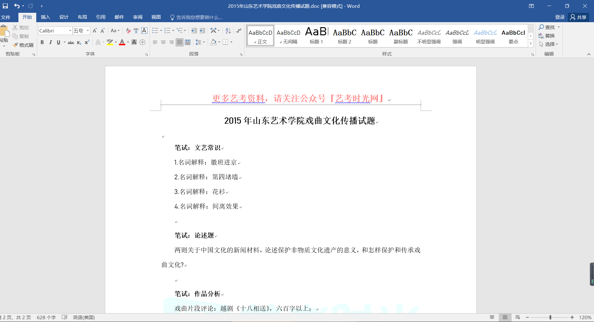 2015年山东艺术学院戏曲文化传播试题