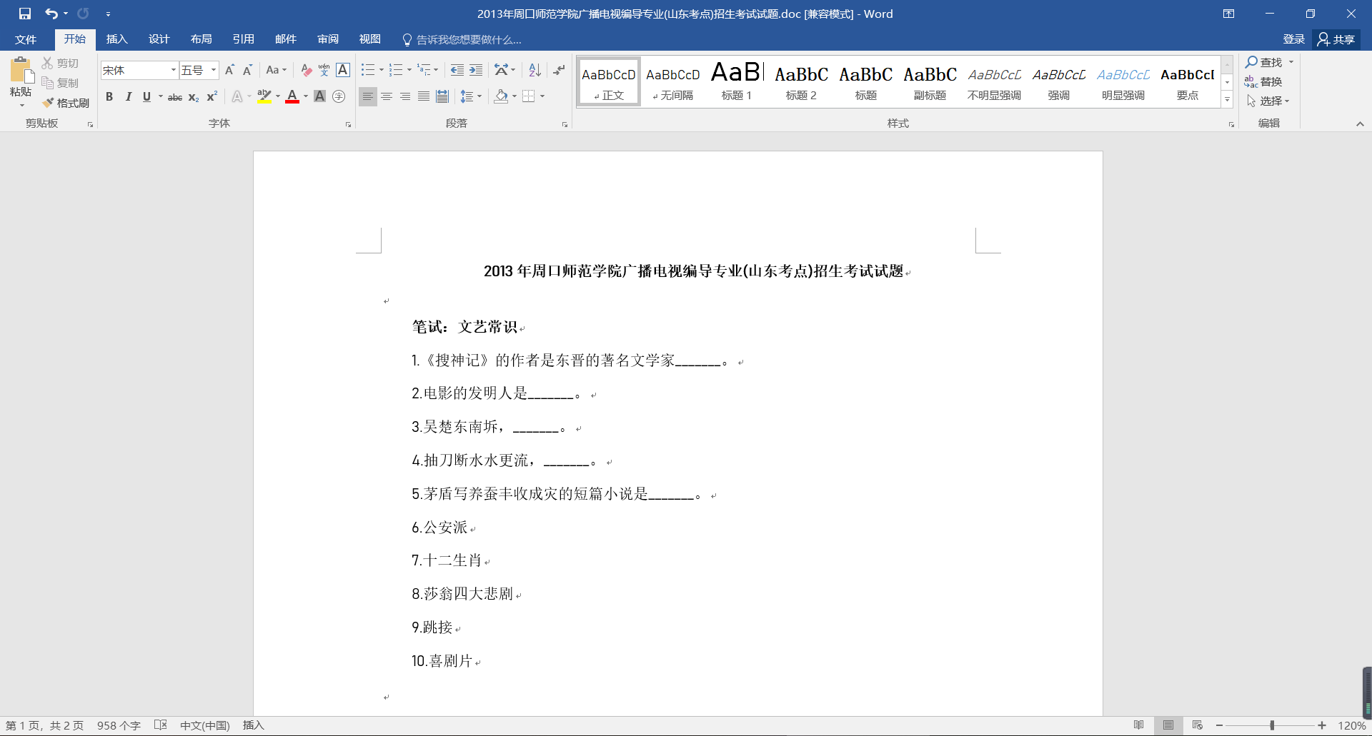 2013年周口师范学院广播电视编导专业(山东考点)招生考试试题