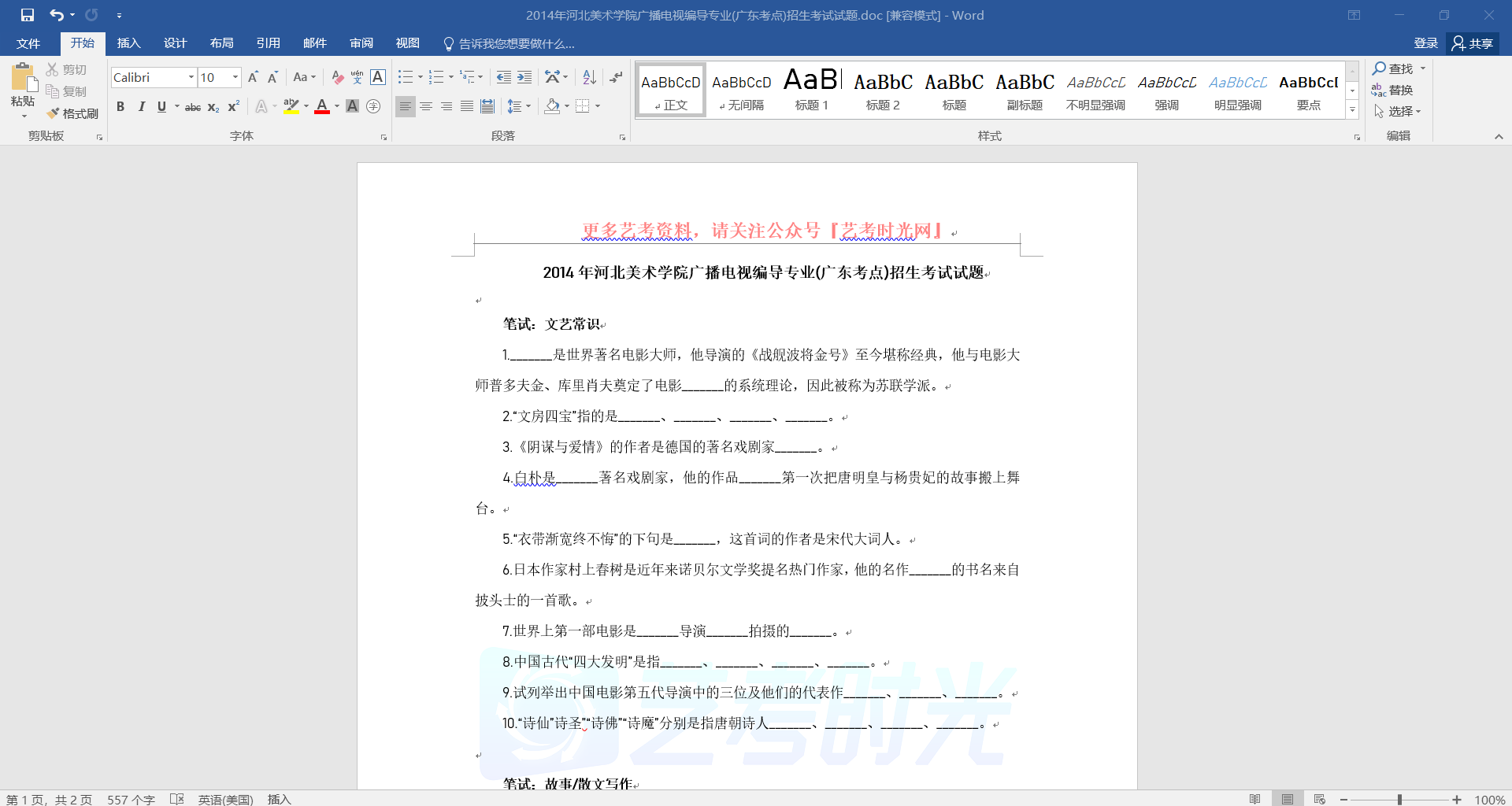 2014年河北美术学院广播电视编导专业(广东考点)招生考试试题