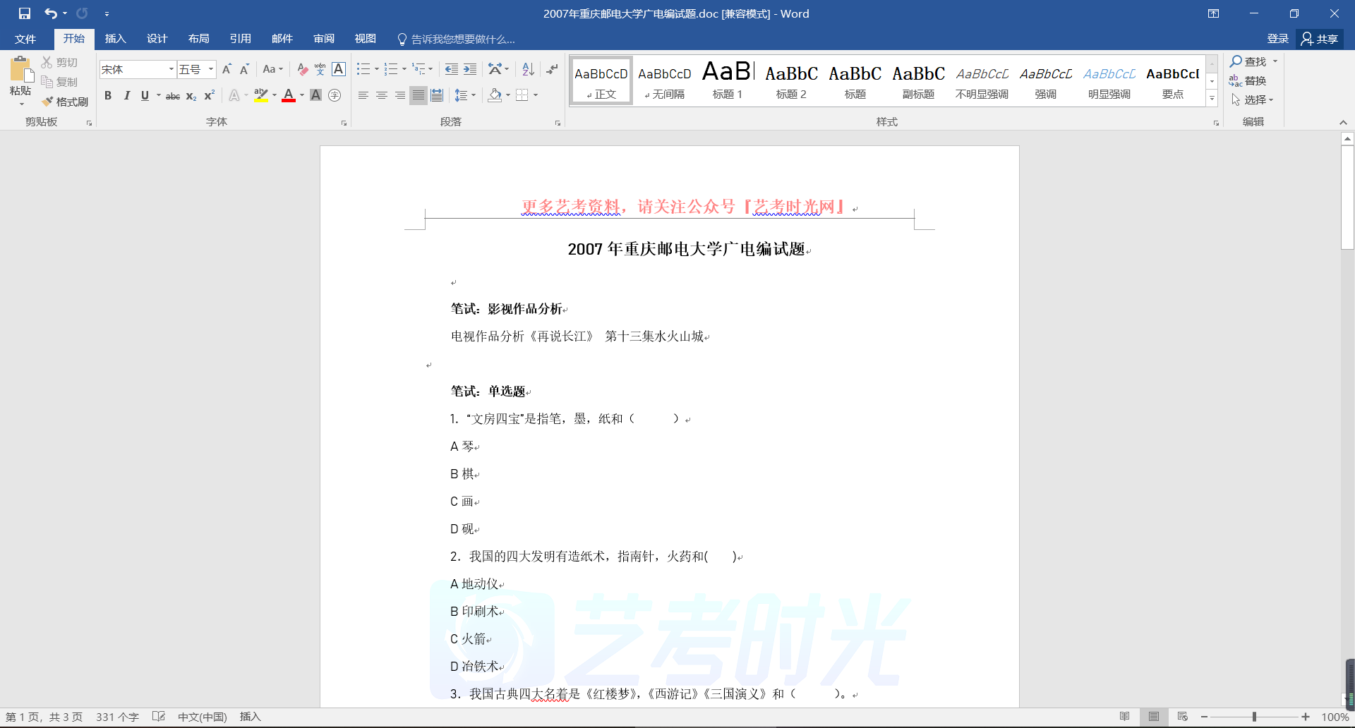 2007年重庆邮电大学广电编试题