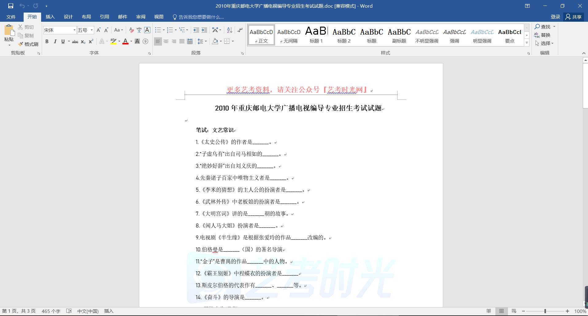 2010年重庆邮电大学广播电视编导专业招生考试试题