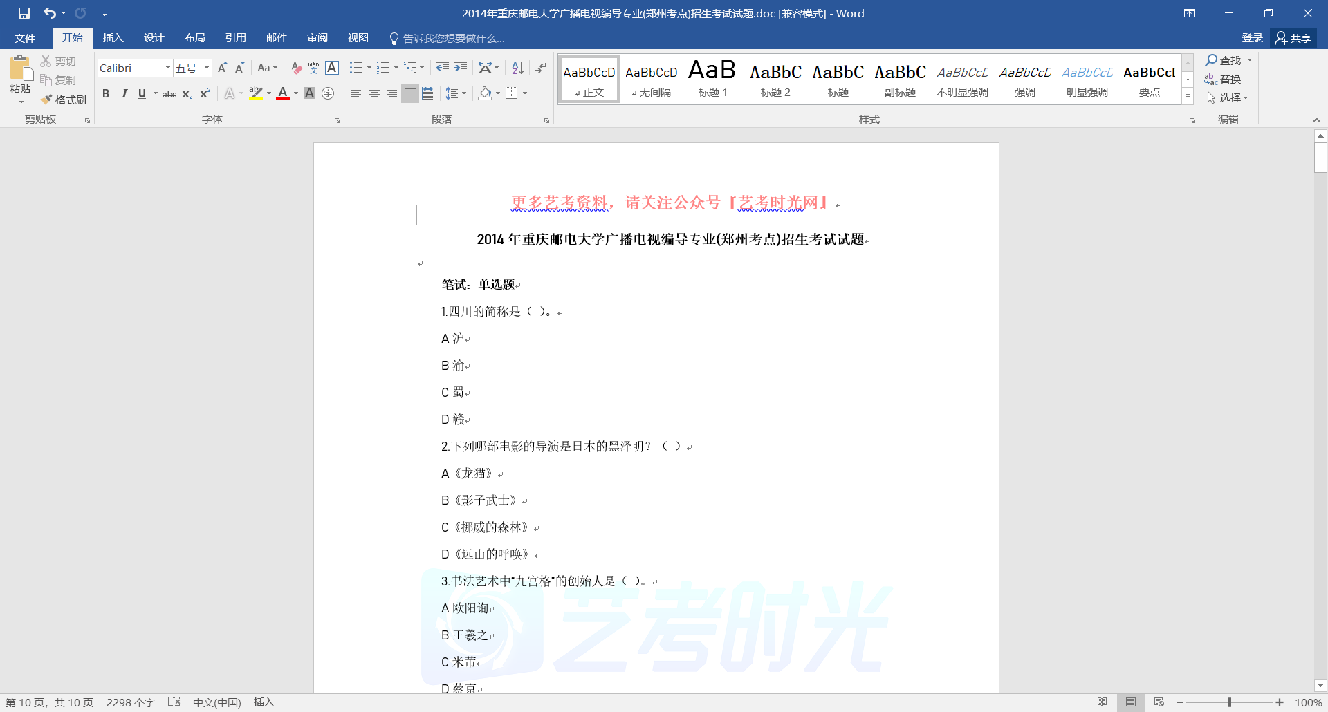 2014年重庆邮电大学广播电视编导专业(郑州考点)招生考试试题