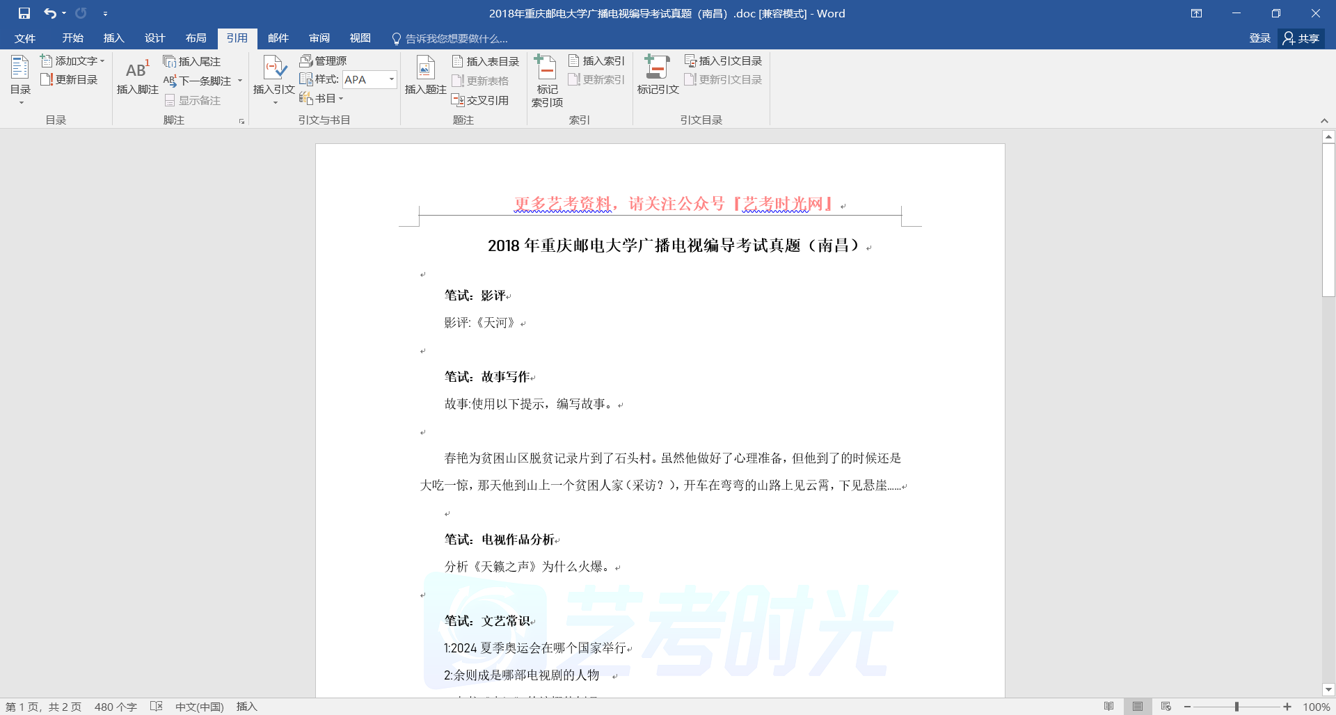 2018年重庆邮电大学广播电视编导考试真题(南昌)
