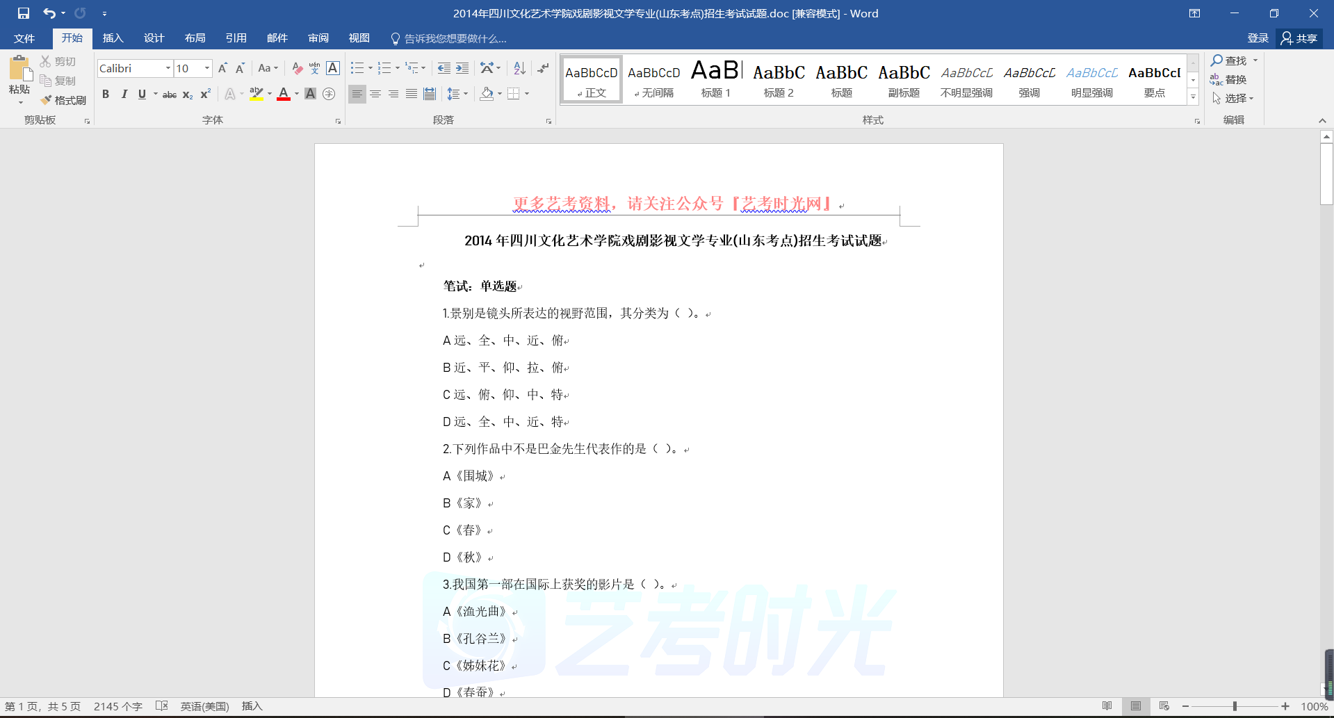 2014年四川文化艺术学院戏剧影视文学专业(山东考点)招生考试试题