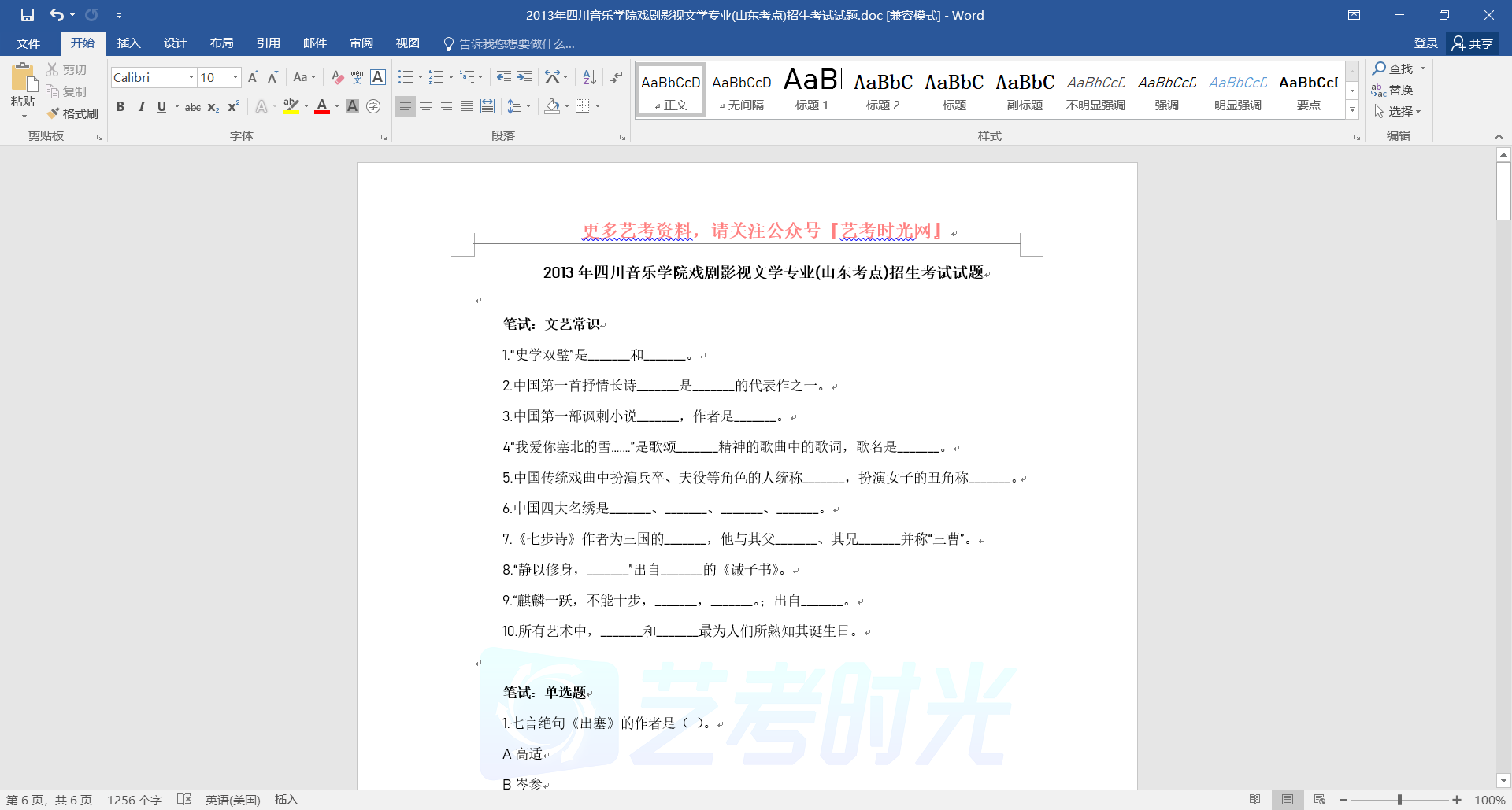 2013年四川音乐学院戏剧影视文学专业(山东考点)招生考试试题