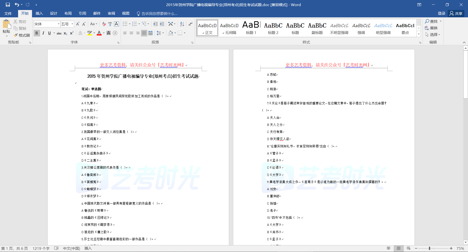 2015年贺州学院广播电视编导专业(郑州考点)招生考试试题