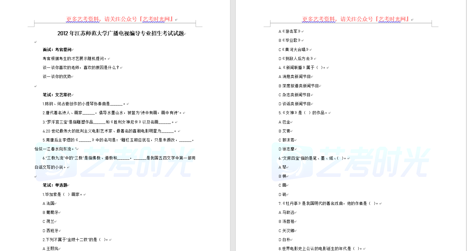 2012年江苏师范大学广播电视编导专业招生考试试题