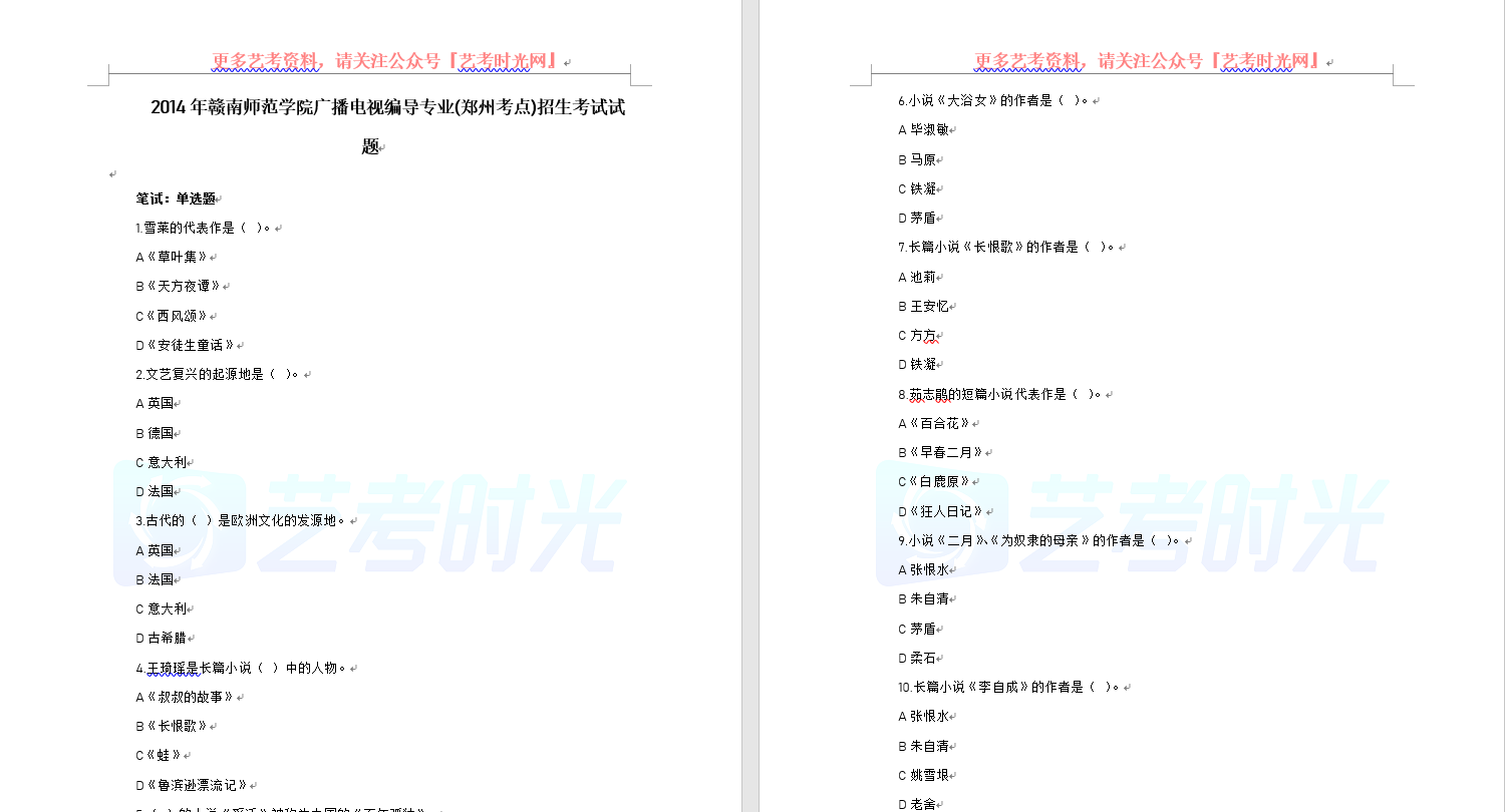 2014年赣南师范学院广播电视编导专业(郑州考点)招生考试试题
