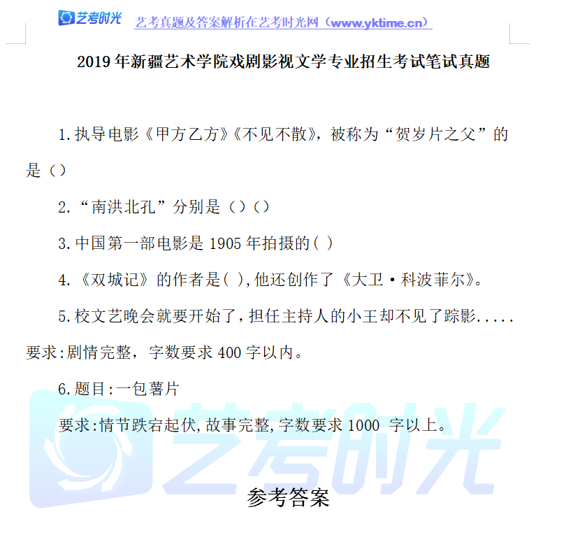 2019年新疆艺术学院戏剧影视文学专业招生考试笔试真题