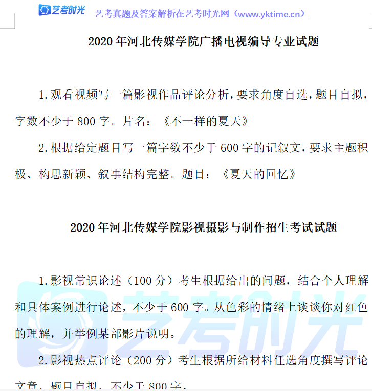 2020年河北传媒学院广播电视编导专业试题