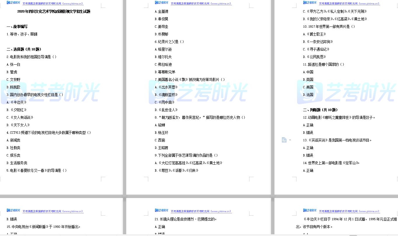 2020年四川文化艺术学院戏剧影视文学招生试题