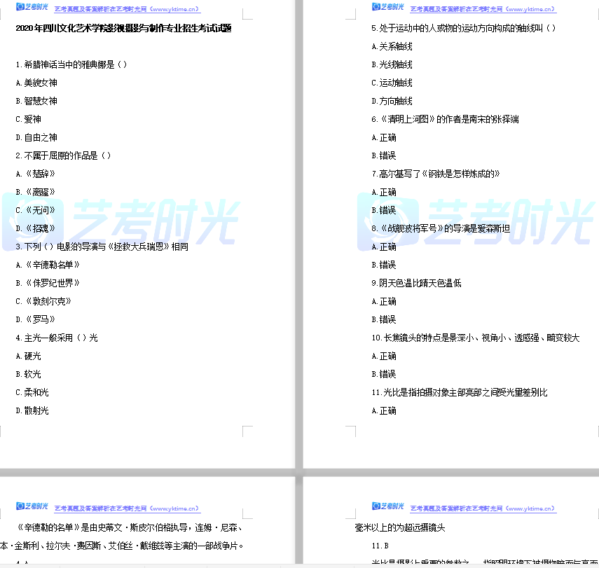 2020年四川文化艺术学院影视摄影与制作专业招生考试试题