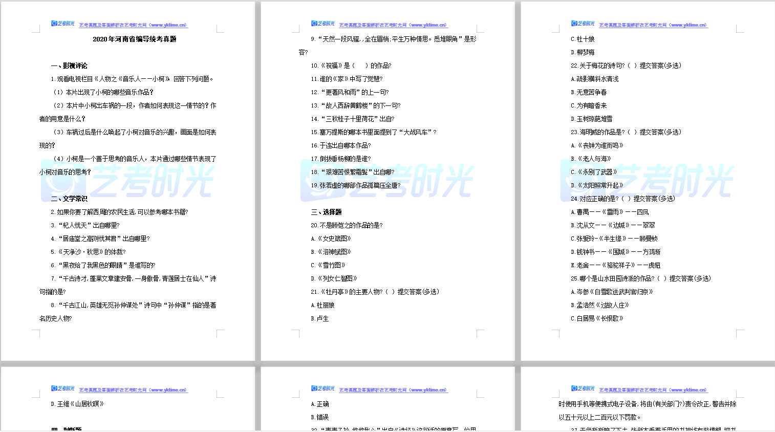 2020年河南省编导统考真题