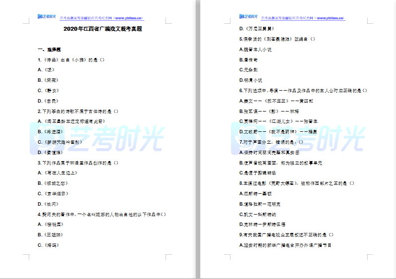2020年江西省广编戏文统考真题