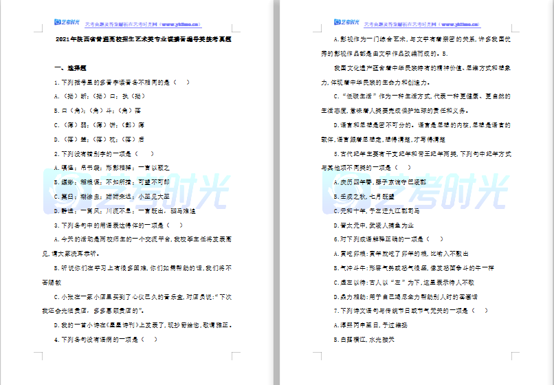 2021年陕西省普通高校招生艺术类专业课播音编导类统考真题