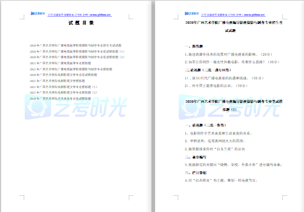 2020年广西艺术学院广播电视编导影视摄影与制作专业笔试模拟题(2)