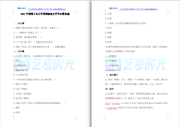 2021年湖南工业大学戏剧影视文学专业模拟题
