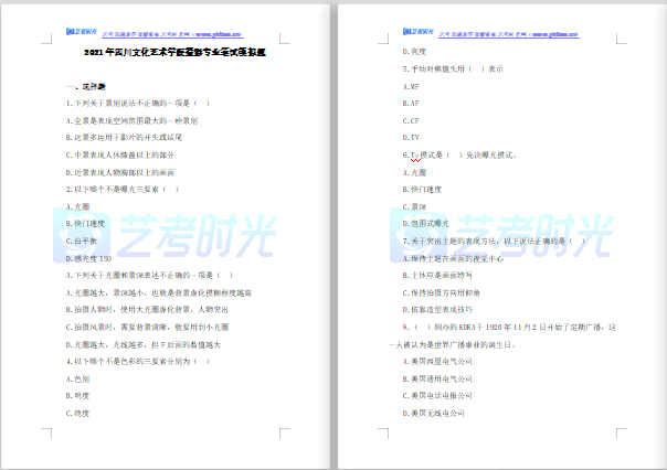 2021年四川文化艺术学院摄影专业笔试模拟题