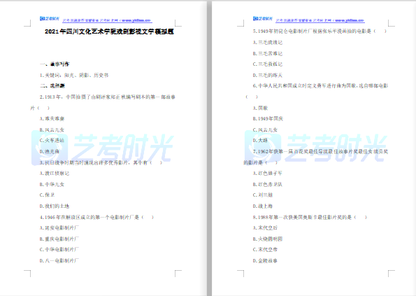 2021年四川文化艺术学院戏剧影视文学模拟题