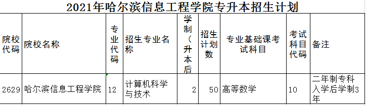 2021年哈尔滨信息工程学院专升本招生计划已公布,专升本招生专业仅有1个,下面库课小编给大家分享一下哈尔滨信息工程学院2021年专升本各专业具体招生情况,考生可以看看。