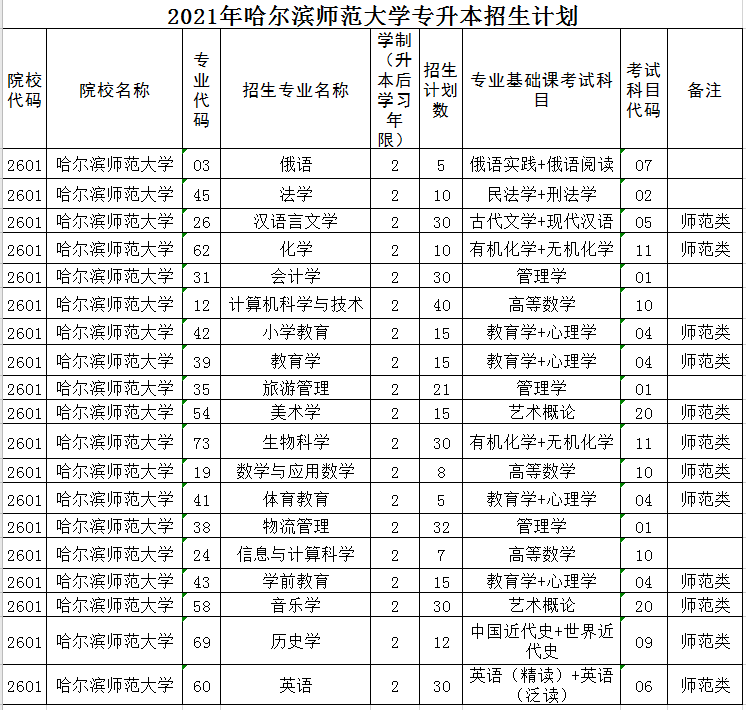 2021年哈尔滨师范大学专升本招生计划已公布,专升本招生专业一共有19个,下面库课小编给大家分享一下哈尔滨师范大学2021年专升本各专业具体招生情况,考生可以看看。