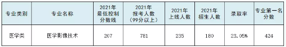 医学影像技术报考人数增多,招生计划缩减,21年录取率大幅下降。