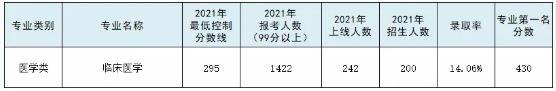 2021年分数线:2952021录取率:14.06%