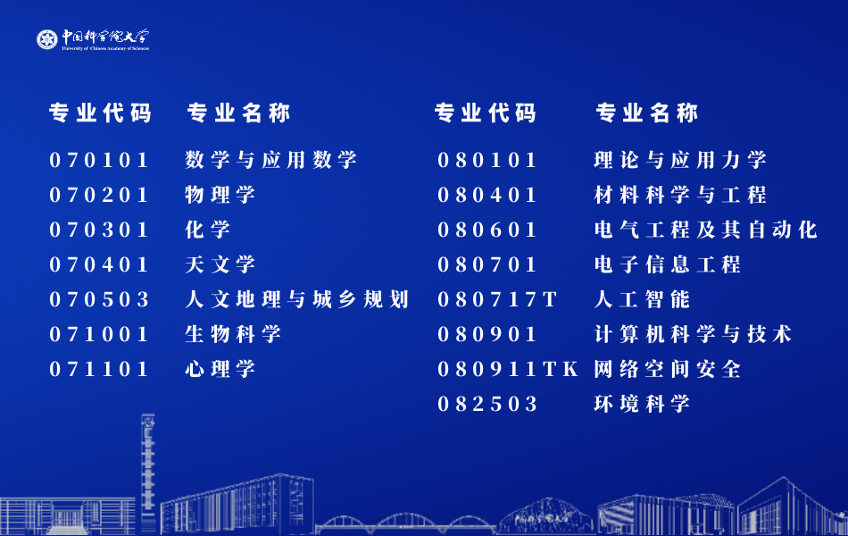 2022年国科大共15个专业(理学7个,工学8个)招收本科生,具体如下: