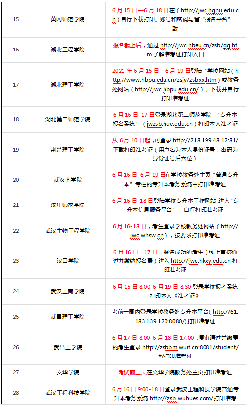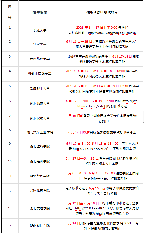 转眼已经2021年6月份了,距离湖北专升本考试越来越近,现在是湖北专升本各高校准考证打印时间,下面库课小编汇总了2021年湖北专升本各院校准考证打印时间,考生们快来看看吧。