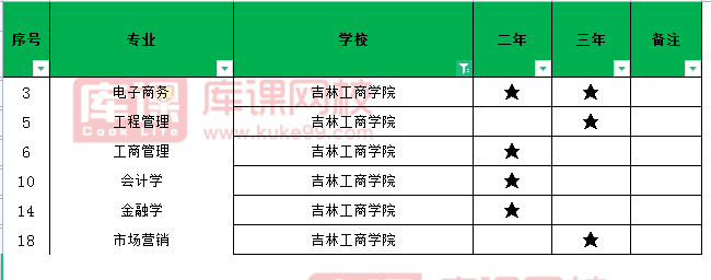 吉林工商学院是2021年吉林专升本招生院校之一,招生专业共有6个,两年制和三年制专业各不相同,库课网校带大家看一下2021年吉林工商学院专升本各招生专业的分数线。