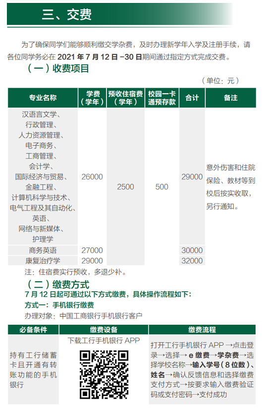 缴费、校园卡、宿舍入住