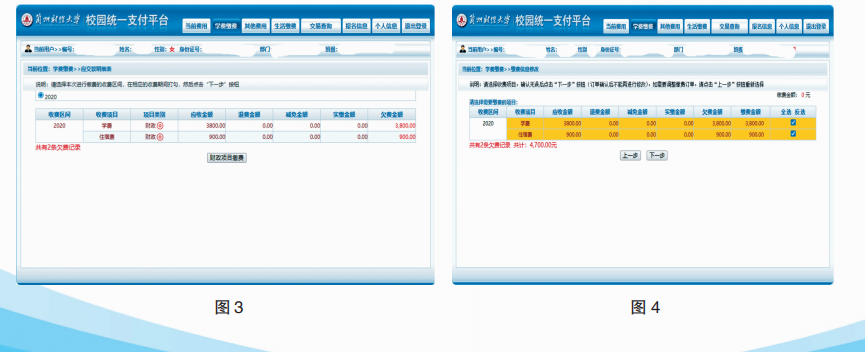 点击导航栏的“学费缴纳”按钮,点击财政项目缴费,如图 3、4所示(电脑版),图 5、6所示(手机版),选择缴费的学年、缴费项目,按提示进行缴费。
