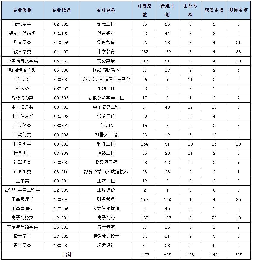 4.专项计划缺额同步进行调剂。在某专业普通计划超额且专项计划未满额情况下,将专项缺额计划调整为普通计划进行录取。