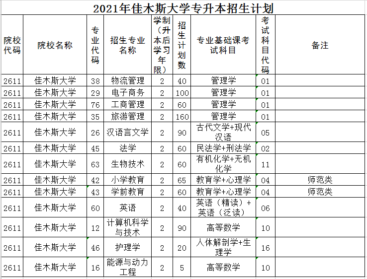 2021年佳木斯大学专升本招生计划已公布,专升本招生专业一共有13个,下面库课小编给大家分享一下佳木斯大学2021年专升本各专业具体招生情况,考生可以看看。