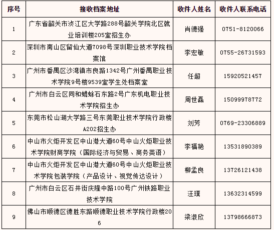 接收单位为录取专业所在学院党委(备注录取专业)。详见下表: