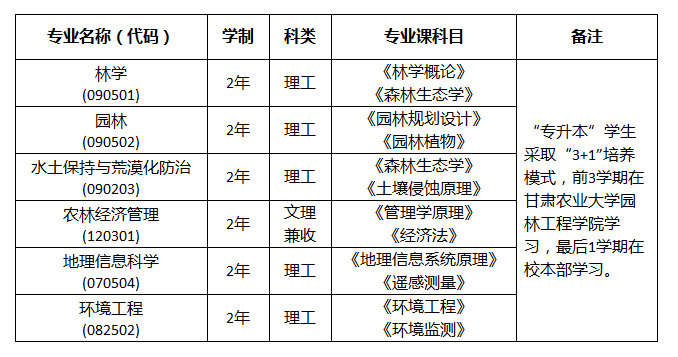 2021年甘肃农业大学专升本招生专业及专业课考试科目